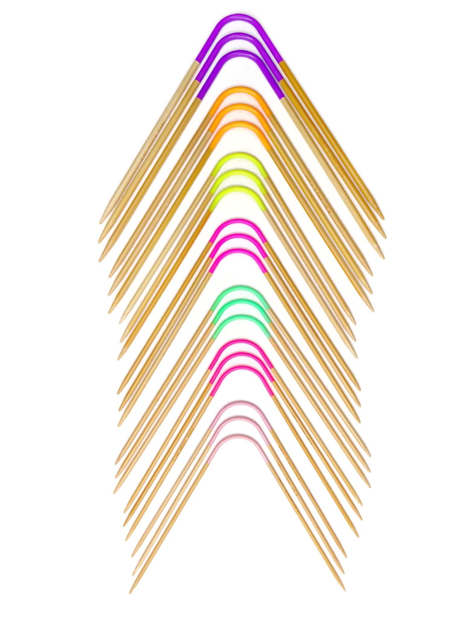 Det forbindelsesmateriale og den ensartede diameter sikrer, at maskerne glider glat over kurven, hvilket gør pindene velegnede til rundstrik. Ud over deres glathed forbliver de fleksible, bevarer deres V-form takket være memory-effekten og tilpasser sig de naturlige håndbevægelser under strikning. Neko Bamboo Flex-strikkepinde sættet fås ikke kun i forskellige pindestørrelser, men også med fire forskellige pindelængder – 9, 10, 11 og 12 cm – pindestørrelser går fra 2 til 6 mm.